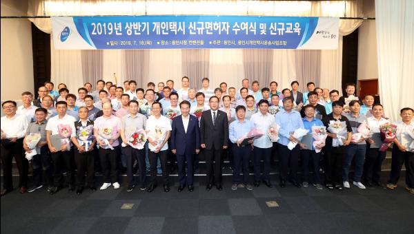 용인시는 18일 시청 컨벤션홀에서 올해 상반기 개인택시 신규면허자 65명에게 면허증을 수여하고 서비스 향상을 위한 친절교육을 했다.