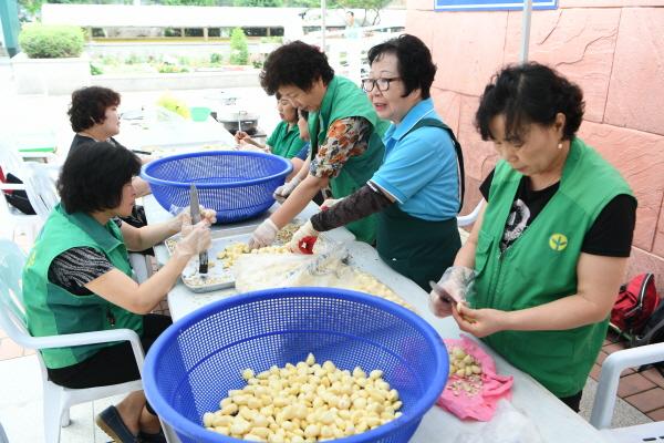 구리시 수택3동네서는 지난 7월 18일 행정복지센터 광장에서 관내 독거 어르신을 위한 마늘·꿀절임 행사를 가졌다.