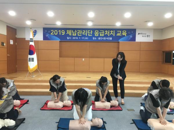 용인시는 지난 17일 시청 비전홀에서 체납관리단 기간제근로자 60여명을 대상으로 응급처치 교육을 했다.
