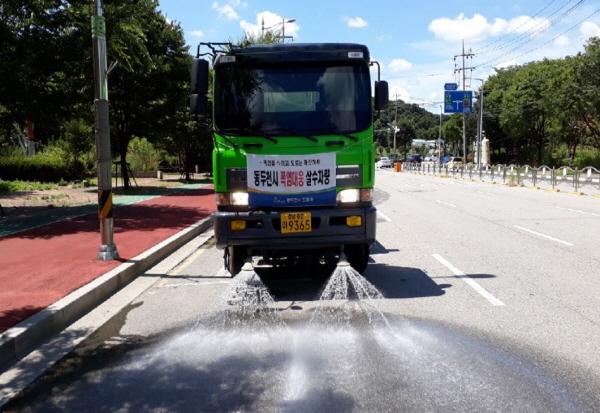 동두천시는 폭염주의보시 16톤 살수차량 2대를 투입해 유동인구가 많은 원도심과 신시가지를 중심으로, 주요 간선도로 등 총 35km에 대해 폭염이 끝나는 8월말까지 1일 3~4회에 걸쳐 살수작업을 실시한다.