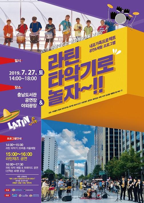 내포신도시 인근 주민들을 대상으로 진행하는 이번 행사에서는 오후 2시 라틴 타악기 자유체험, 오후 3시부터 4시 라틴 타악기 앙상블 공연, 오후 4시부터 5시 라틴 타악기 퍼레이드 등 다채로운 프로그램을 진행한다.