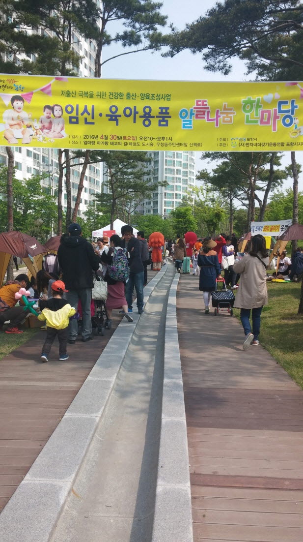 포항시는 지난 4월 30일 우현동 폐철도 도시숲 태교의 길에서 임신육아용품 알뜰나눔 한마당 행사를 개최했다. 육아가정의 경제적 부담을 경감하고 출산장려분위기 조성을 위해 올해 처음 개최된 이번 행사에서는 모두 50개의 부스가 운영된 가운데 육아가정에서 사용하던 어린이용 의류, 장난감, 교구 등을 저렴하게 판매하고 구매하는 나눔의 한마당이 펼쳐졌다. 또한 행사장 한편에서는 핸드페인팅, 풍선 아트 등 다양한 체험 이벤트를 마련해 어린자녀들과 함께 나들이 나온 육아가정에 볼거리, 즐길 거리를 제공하기도 했다. 포항시 관계자는 “이번 행사가 출산친화적 지역사회 분위기를 조성하고, 자원재활용으로 육아가정에 조금이나마 경제적 도움이 되길 바란다”고 말말했다.