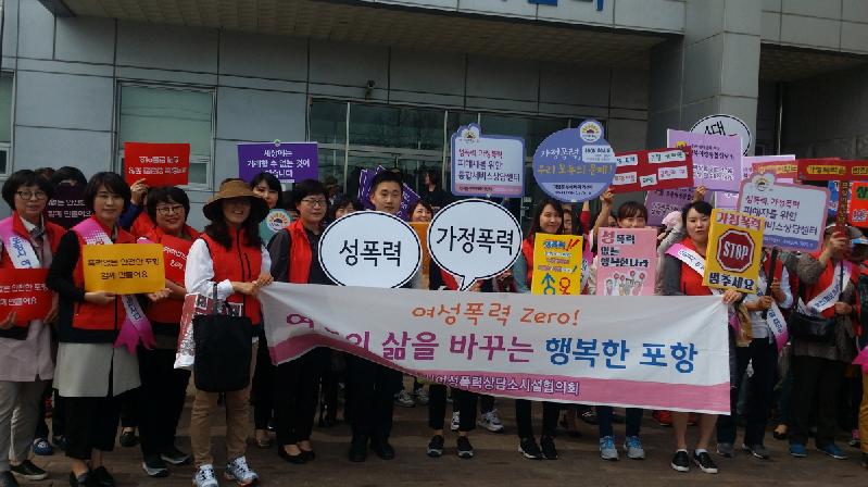 포항시 여성폭력상담시설협의회는 2일(월) 흥해시장 5일 장날에 맞춰 폭력예방 캠페인을 실시했다. 이날 행사는 우리 사회에 만연해 있는 여성폭력에 대한 시민들의 경각심을 고취시키고, 폭력방지에 적극 동참하는 분위기를 조성하기 위해 마련됐다. 이날은 포항시 여성폭력관련 상담소와 보호시설 종사자 및 자원봉사자, 경찰, 공무원 100여명이 참석한 가운데 ‘폭력없는 포항, 안전한 포항’을 슬로건으로 거리캠페인을 펼쳤다. 윤영란 여성가족과장은 “증가하고 있는 여성폭력에 대한 심각성을 알리고 인식의 변화를 이끌어 내어 안전한 포항 건설을 위해 계속적으로 캠페인 활동을 펼쳐 나갈 것”이라고 밝혔다. 포항시 여성폭력상담시설협의회는 매년 상·하반기 각각 흥해시장, 오천시장에서 캠페인을 하고 있으며, 각 상담소 및 시설별로 다중집합장소에서 홍보물을 전달하는 등 폭력예방을 위해 힘쓰고 있다.