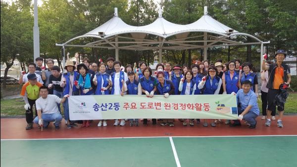 송산2동은 지난 19일 송산2동 통장협의회, 공무원 등 총 60여 명이 참여한 가운데 관내 도로변의 환경정화활동을 실시했다.