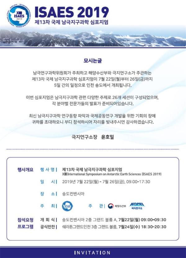 해양수산부와 극지연구소는 22일부터 오는 26일까지 인천 송도컨벤시아에서 ‘제13차 국제 남극지구과학 심포지엄’을 개최한다.