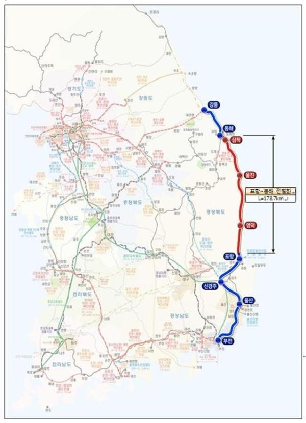 국토교통부는 포항~동해 전철화사업의 추진을 위해 오는24일 기본 및 실시설계 용역을 착수한다고 밝혔다.