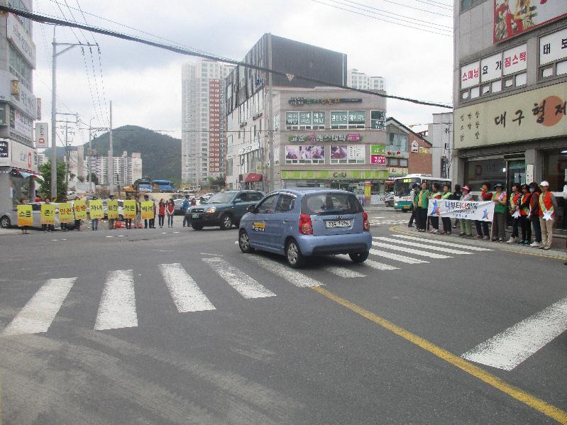 거제시 나부터 다함께 시민운동본부 수양동지부는 지난 2일 수월삼거리에서 ‘배려 교통문화 확산 캠페인’을 실시했다.