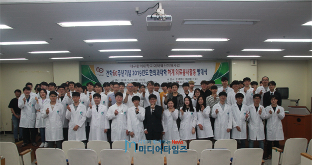 대구한의대학교(총장 변창훈) 한의과대학은 지난 19일 대구 수성캠퍼스 한의학관 대강당에서 한의학과 교수와 학생 100여명이 참석한 가운데 “2019년도 하계 의료봉사단 발대식”을 가졌다.