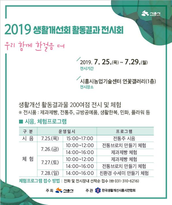 오는 25일 목요일부터 29일 월요일까지 5일간 시흥시 농업기술센터 1층 연꽃갤러리에서‘제3회 시흥시생활개선회 활동결과 전시회’를 개최한다.