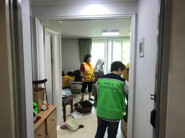지역사회보장협의체위원, 명예사회복지공무원, 월곶동 적십자 봉사회, 동영산업, 우리동네관리소 등 40명이 넘는 자원봉사자들이 이사 및 입주청소를 도왔다.