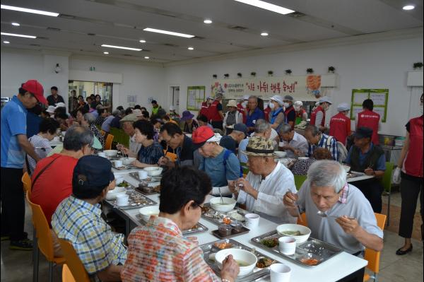 파주시는 LG디스플레이가 지난 22일 중복을 맞이해 파주시노인복지관을 찾아 어르신 900명에 맛있는 삼계탕을 대접하고 경제적 상황이 어려운 독거·재가어르신 250가정에 여름김치를 지원하는 행사를 진행했다고 전했다.