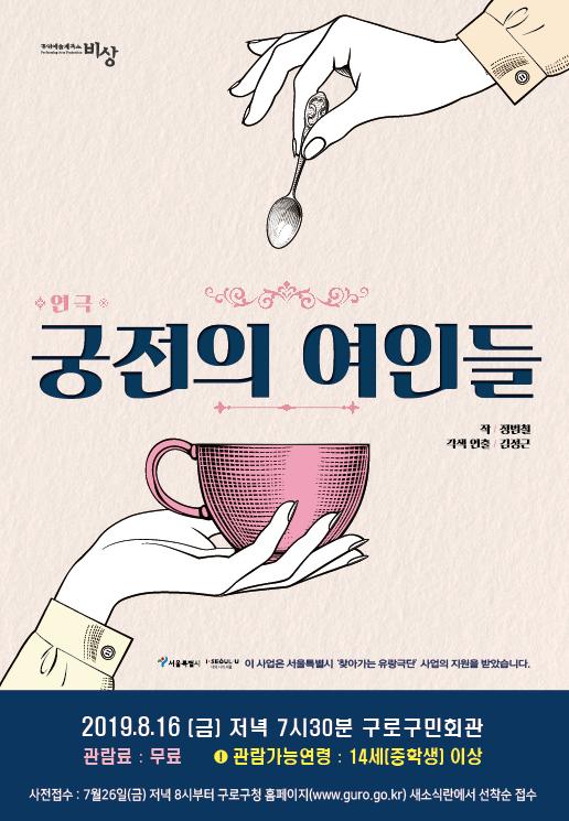 구로구는 내달 16일 ‘궁전의 여인들’, 11월 5일 ‘범죄소녀들’, 12월 12일 ‘우기부기’, 12월 17일 ‘선녀와 나무꾼’ 등 서울시가 선정한 우수작품들을 초청해 주민들에게 선보인다. ‘궁전의 여인들’과 ‘범죄소녀들’은 구민회관에서, 나머지 두 작품은 오류아트홀에서 공연한다.