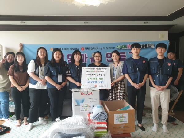 함께하는 이마트 희망나눔프로젝트 일환인 이마트‘희망마을만들기’사업으로 이마트 평택점은 신생아 의류, 젖병, 체온계 등 넷째 자녀 출산을 앞둔 가정에 필요한 출산용품을 자체 제공해 전달했다.