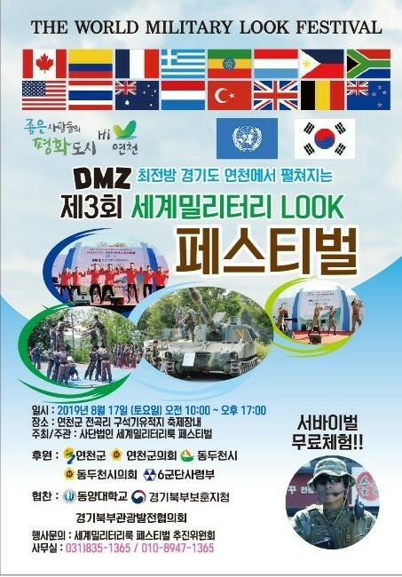 한편 제3회 세계밀리터리룩 페스티벌은 연천군·연천군의회·동두천시·동두천시의회·6군단·연천군자원봉사센터가 후원하고 동양대학교·경기북부보훈지청·경기북부관광발전협의회 등이 협찬한다.