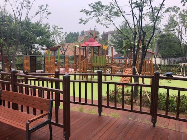 또한, 시립도서관을 이용하는 어린이들을 위해 어린이용 조합놀이대와 놀이시설물 3종을 설치해, 어린이들이 색다르고 다양하게 공원을 이용할 수 있도록 하고, 운동시설물 3종을 추가 설치해 어른들의 공원이용도 고려했다. 특히, 설치된 시설물 중 목재 데크 전망대에서는 신천의 전경을 주야 모두 즐길 수 있어, 남녀노소 모든 공원 이용객들이 즐길 수 있는 공간이 될 것으로 기대된다.