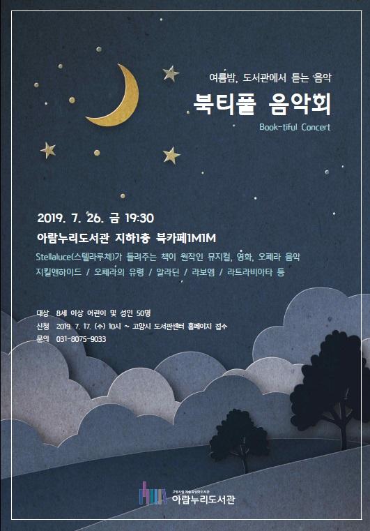 오는 26일 금요일 저녁, 고양시립 아람누리도서관에서 아름다운 여름밤 음악회가 열린다. 책이 원작인 뮤지컬, 영화, 오페라 음악을 해설과 함께 들려주는 여름 북캉스 프로그램 ‘북티풀 음악회 Book-tiful Concert’다.