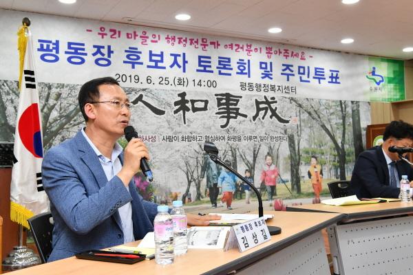 이날 투표에서 가장 많은 표를 받은 김상길 평동장과 민효근 행궁동장이 동장 대상자로 선발됐고, 두 사람은 7월 15일 인사에서 동장으로 발령났다. 평동 2명, 행궁동은 3명이 후보로 등록했고, 주민추천인단은 평동 143명, 행궁동 150명이었다.