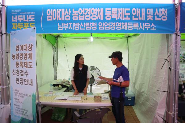 남부지방산림청은 지난 18일부터 21일까지 4일 동안 김천 직지문화공원에서 열렸던 ‘2019년 김천 자두·포도 축제’에서 공공분야 홍보부스를 운영, 임야대상 농업경영체 등록제도 및 신청안내를 진행했다.