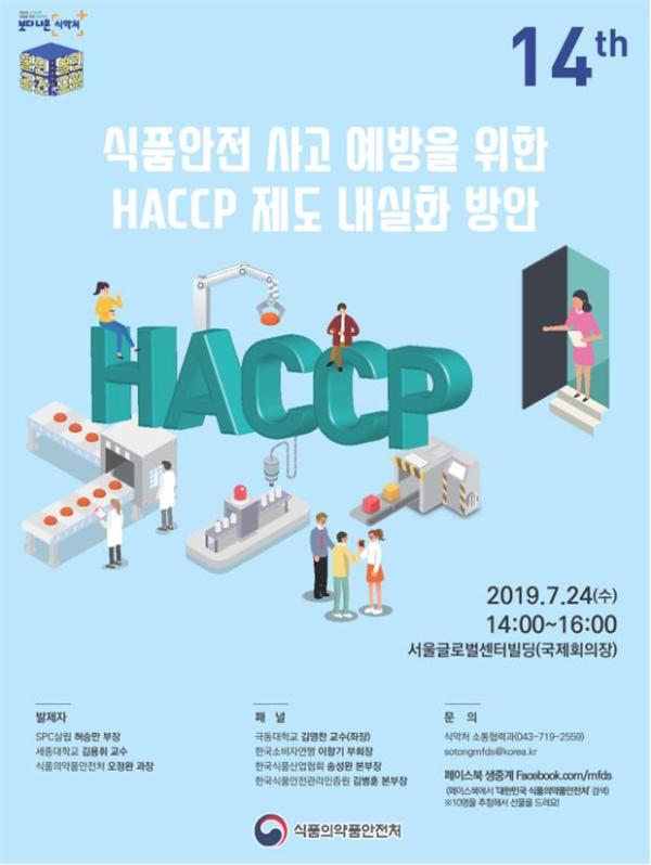 주요 내용은 HACCP 제도 운영을 통한 식품기업 안전관리 현황 식품안전관리인증제도 해외 동향 및 제언 HACCP 제도 내실화를 위한 관리체계 개선방안 패널토론 등으로 진행된다.