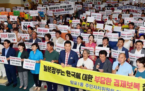시민들은 결의문에서 “자유무역 질서에 위배되는 보복적 성격의 수출규제 조치의 부당함을 강력히 규탄한다”면서 “일본정부가 경제보복을 철회하기 전까지 일본산 제품 불매운동에 앞장서겠다”고 강조했다.