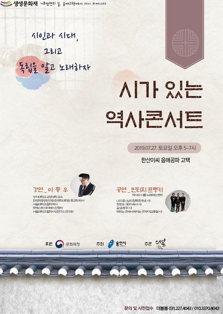 용인시는 오는 27일 오후5시 기흥구 지곡동 한산이씨 음애공파 고택에서 독립운동가들의 삶과 문학사상을 되새기는 역사 콘서트를 연다고 밝혔다.