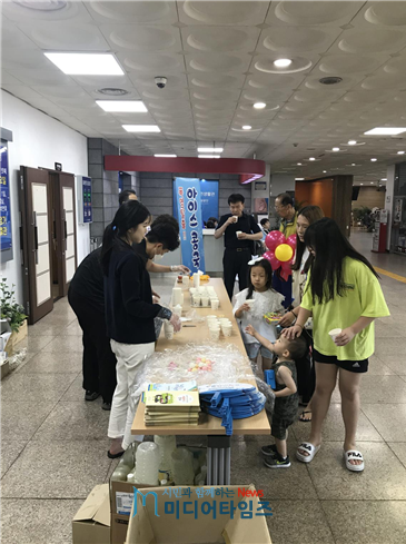 올림픽기념국민생활관에서 본격적인 더위에 대비하여 방문고객을 대상으로 1층 로비에서 아이스콩국과 전통떡을 무료로 나누어주는 이색 여름나기 행사를 개최했다.