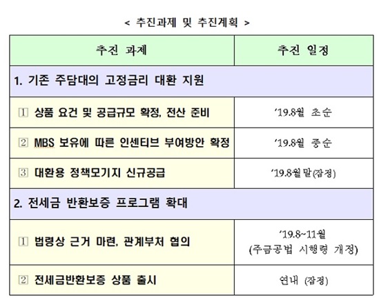 대환용 정책 모기지의 구체적 요건, 공급 규모, 지원 요건 등은 TF가 확정해 다음 달 말 출시할 계획이다.