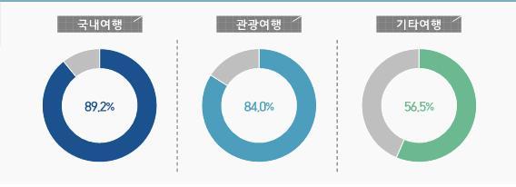 2018년 조사 결과 우리나라 만 15세 이상 국민의 89.2%가 국내여행을 경험한 것으로 나타났다. 국내여행 횟수 총량은 3억 1,115만 회, 국민 1인당 평균 국내여행 횟수는 약 6.92회였다. 국내여행 가운데 여행의 주된 목적이 ‘관광·휴양’인 관광여행은 국민 1인당 5.26회, 여행의 주된 목적이 ‘출장·업무’, ‘단순 귀성이나 단순 친구·친지 방문’인 기타여행은 국민 1인당 1.66회로 나타났다.
