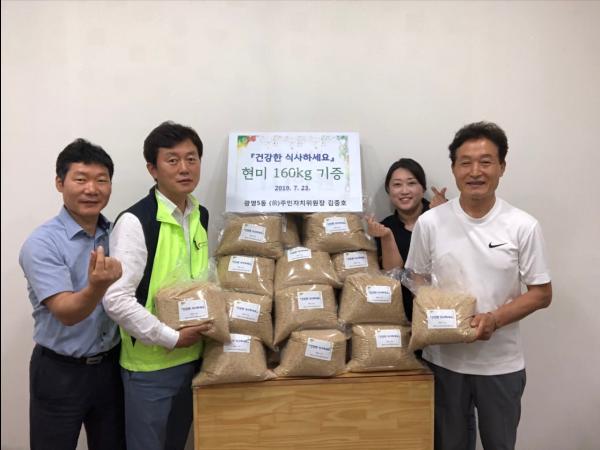 광명시 광명5동 행정복지센터는 지난 23일 김중호 주민자치위원장이 도움의 손길이 필요한 이웃들에게 현미 160kg를 전달하는 전달식을 가졌다.