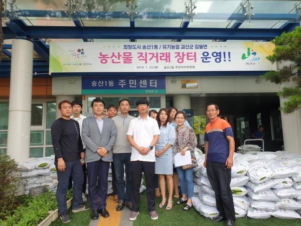의정부시 송산1동은 지난 23일 송산1동 주민센터 앞마당에서 자매결연지인 충북 괴산군 감물면과의 교류활성화를 위한 질 좋은 농산물을 산지 직접배송으로 주민에게 판매하는 직거래 장터를 운영했다.