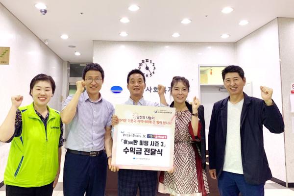 온라인 커뮤니티 김진나와 모아패션아울렛이 ‘즐기go 나누go 김포의 Night Festival 夜한 Meeting 시즌Ⅲ’ 행사 수익금 385만 원을 최근 김포시종합사회복지관에 전달했다.