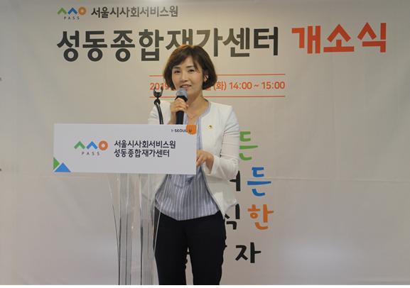 오현정 부위원장은 축사를 통해 “성동종합재가센터는 좋은 돌봄과 좋은 일자리를 추구하는 서울시사회서비스원의 통합재가센터 중 가장 먼저 공공의 돌봄서비스 제공을 시작한다”며 언급하고 성동종합재가센터가 지역사회 통합 돌봄의 선도기관이 되기를 기대한다고 축하의 말을 전했다.