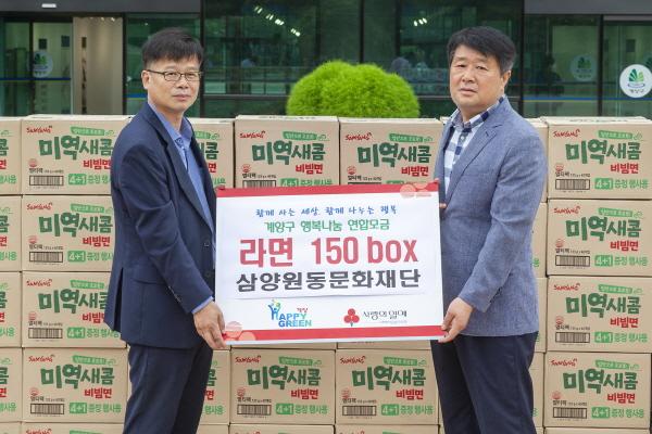 삼양원동문화재단에서는 삼양식품 경인지점을 통해 라면 150박스를 계양구청에 기탁했다.